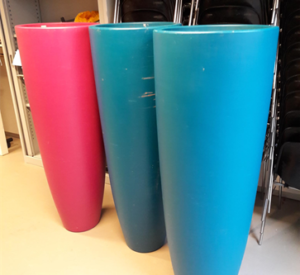 Drie grote kunststof bloembakken. Per direct op te halen bij Kulturhus Westervoort. Graag een bericht bij interesse. DaVinci/IKC Caroussel school is er blij mee gemaakt.