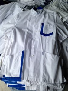 Voor het koken in de gezamenlijke keuken van de recreatieruimte in Beek heeft KBO Beek 24 werkjasjes van Liemerije gekregen.