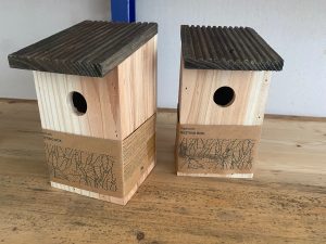 Twee schattige vogelhuisjes, laatste restanten van de kerstpakketten actie van AtmR Gifts. Bureninitiatief Bergh gaat de huisjes in haar kerstpakketten stoppen voor minima gezinnen uit regio Montferland.