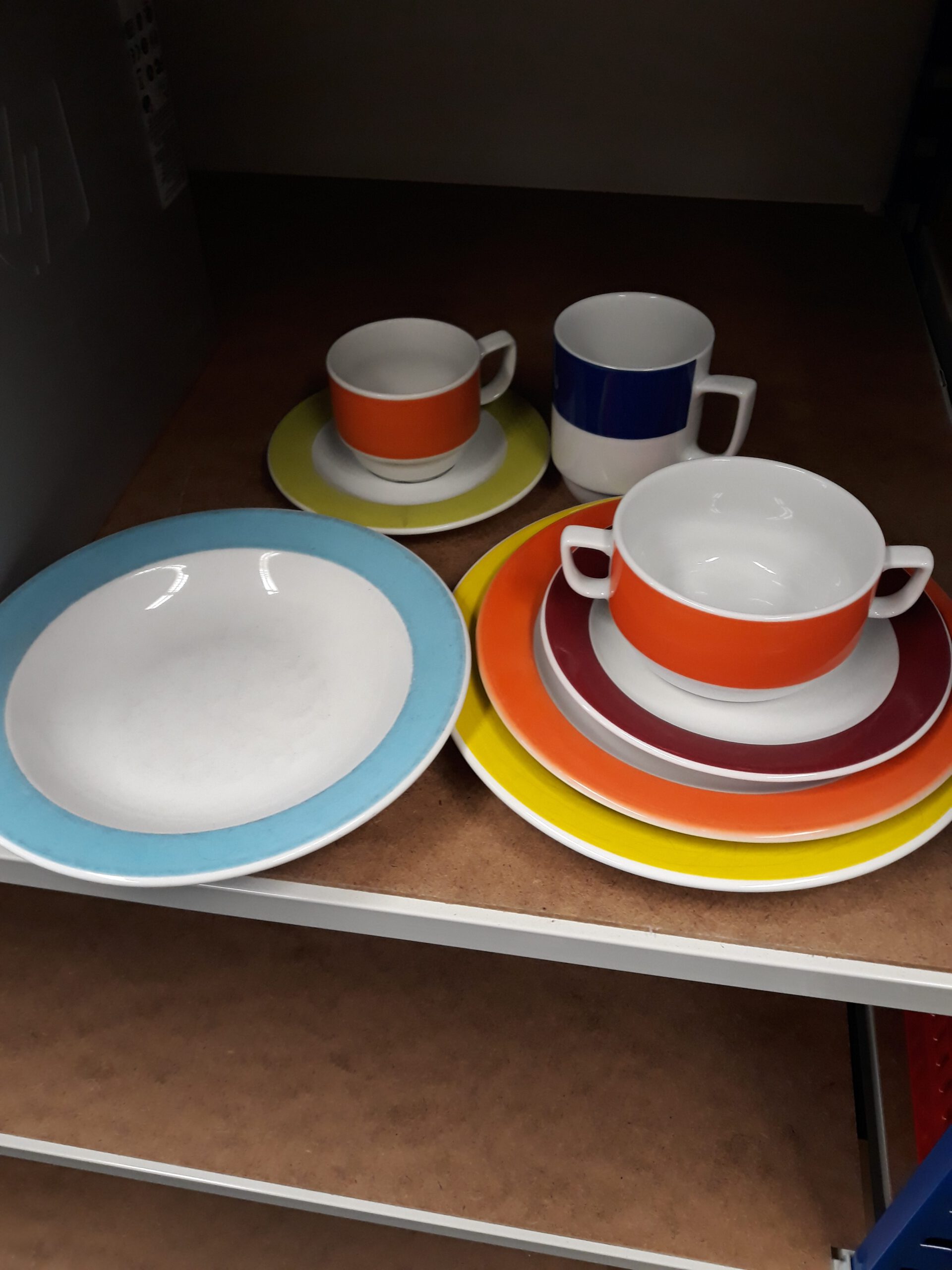 Aanbod, grote partij gekleurd servies voor Stg Re-Free